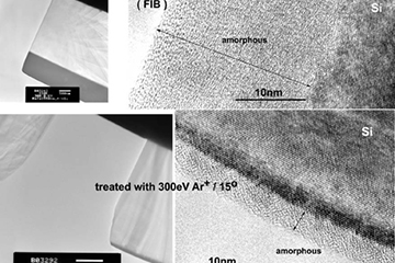 Gentle Mill 对在各种 FIB 制备的样品进行低能量 Ar+ 氩离子研磨显着降低了受损的非晶表面层的厚度。可以实现对 65 nm 节点半导体器件进行原子级结构分析。