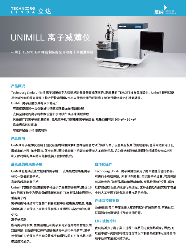 Technoorg Linda UniMill 离子减薄仪专为快速地制备具备高减薄率的、高质量的 TEM/XTEM 样品而设计。
