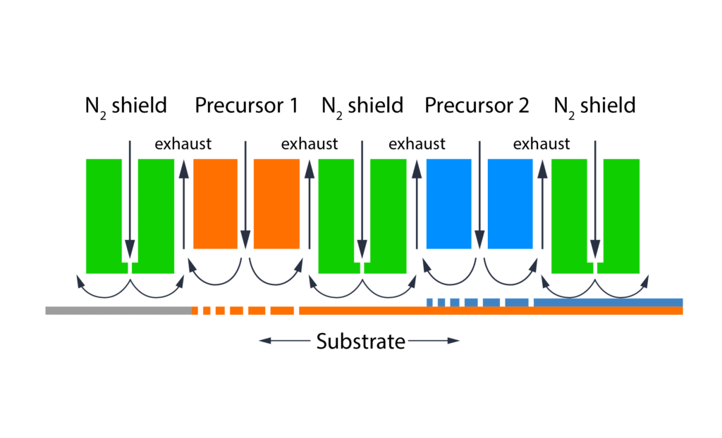 空间原子层沉积是传统原子层沉积 (ALD) 技术的一种变体。传统的 ALD 是一种基于时间顺序和循环的工艺,需要按照受控顺序将基底反复暴露于不同的前驱体气体中;而空间 ALD 则利用了这些前驱体暴露在空间上的分离。在空间 ALD 中,前驱体在空间上是物理分离的,而不是按顺序引入的。